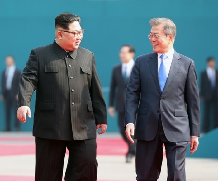 | ▲지난 4월 27일 판문점 선언 당시 문재인 대통령과 김정은 국무위원장이 함께 걸어가며 대화를 나누는 모습. <사진=이슈타임 DB> |