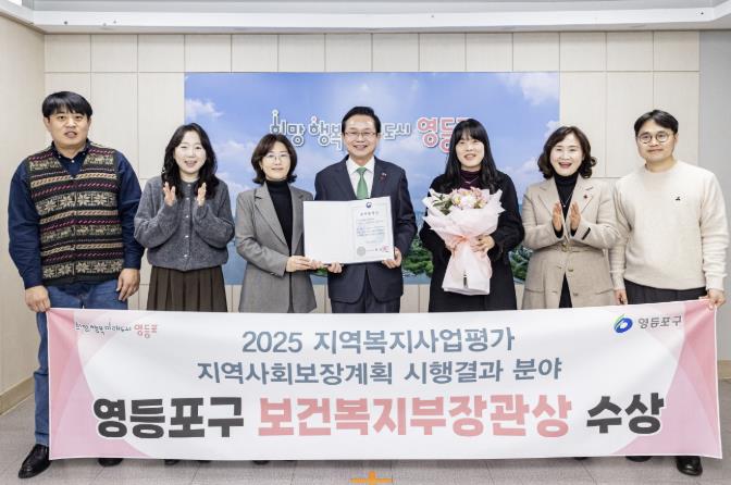 영등포구가 2025년 보건복지부 지역복지사업 평가 ‘지역사회보장계획 시행결과’ 부문에서 우수기관으로 선정돼 보건복지부 장관상을 수상했다고 밝혔다.