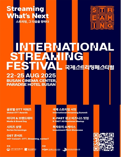 부산시는 과학기술정보통신부와 함께 '2025 국제 스트리밍 페스티벌(International Streaming Festival)'을 오는 8월 22일부터 25일까지 4일간 영화의전당과 부산 파라다이스호텔에서 개최한다고 밝혔다.