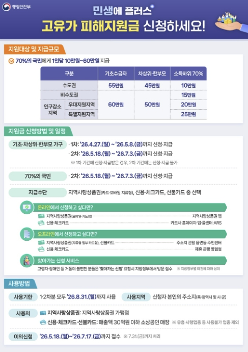 청주시는 고유가·고물가로 인한 시민 부담을 완화하고 지역 경제 회복을 지원하기 위해 오는 27일부터 ‘고유가 피해지원금’ 1차 신청·지급을 개시한다고 밝혔다.