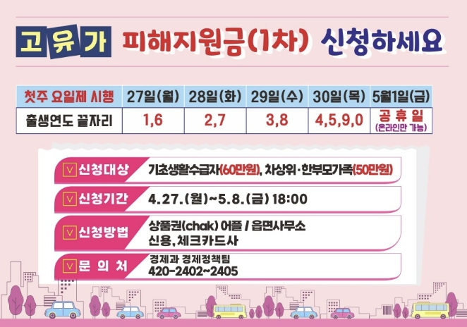 4월 27일부터 신청·지급 시작… 찾아가는 신청 서비스 병행해 사각지대 최소화