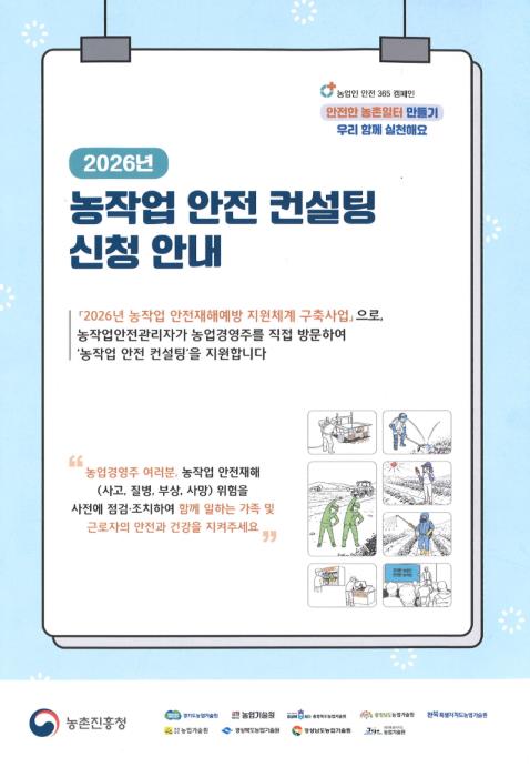안동시는 농업 분야 중대재해 예방과 안전한 농작업 환경 조성을 위해 '2026년 농작업 안전재해예방 지원체계 구축사업'의 일환으로 ‘농작업 안전보건관리 컨설팅’ 참여농가를 모집한다고 1월 16일(금) 밝혔다.