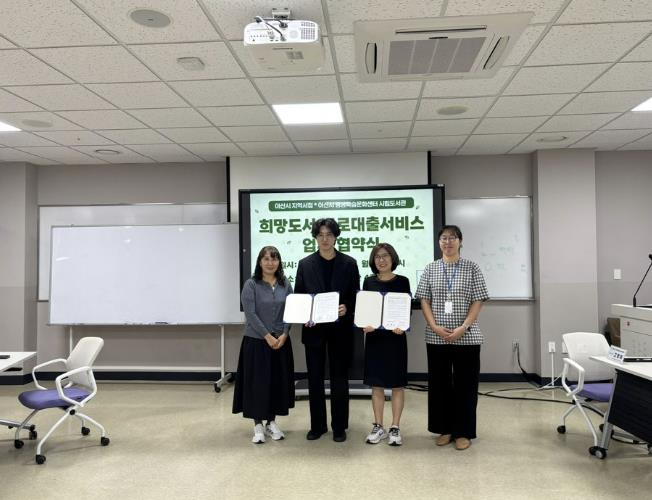 아산시는 13일 둔포면 소재 ‘어제의 서점’과 ‘희망도서 바로대출’ 서비스 운영을 위한 업무 협약을 체결했다고 밝혔다.