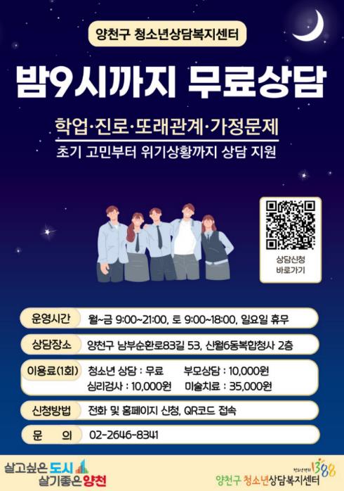 | ▲ 양천구, 청소년상담 무료 및 야간연장 홍보 포스터 |