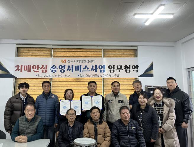 상주시치매안심센터는 1월 14일 경북개인택시운송사업조합 상주시지부와 ‘치매안심 송영서비스’ 운영을 위한 업무협약을 체결하고, 치매어르신의 안전한 이동 지원을 위한 협력체계를 구축했다.