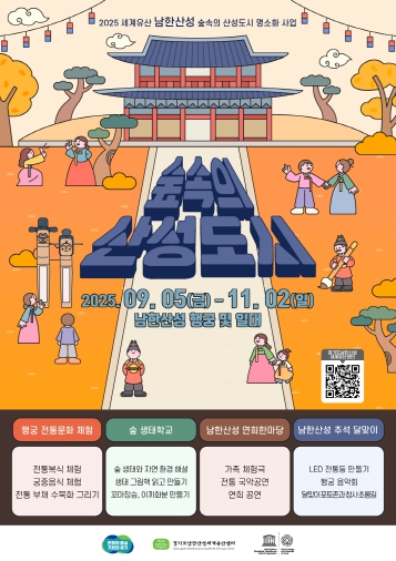 경기도가 가을을 앞두고 남한산성을 찾는 방문객을 위해 9월 5일부터 11월 2일까지 추석을 포함한 매주 금요일, 주말과 휴일에 ‘2025년 세계유산 남한산성 – 숲속의 산성도시 명소화’ 프로그램을 진행한다.