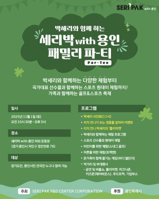 11월 1일 ‘SERI PAK with 용인’ 야외운동장서…박세리 전 감독·스포츠 스타와 함께하는 가족형 골프·스포츠 체험 축제