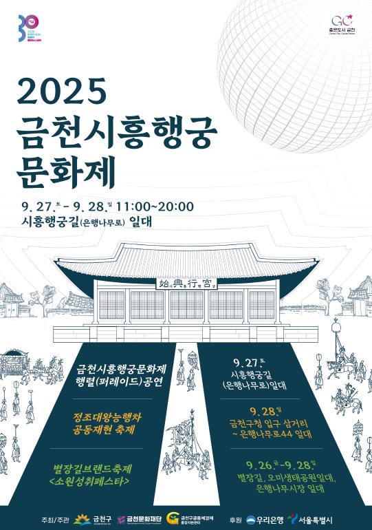 금천구와 금천문화재단은 27일과 28일 양일간 금천구 은행나무로 일대에서 ‘2025 금천시흥행궁문화제’를 개최한다고 밝혔다. 인근에서 하루 전날인 26일부터 지역 대표 축제인 ‘2025 별장길 브랜드 축제(부제: 소원성취페스타 소·성·페)‘도 열려 축제의 한마당이 펼쳐질 것이라고 구는 설명했다.