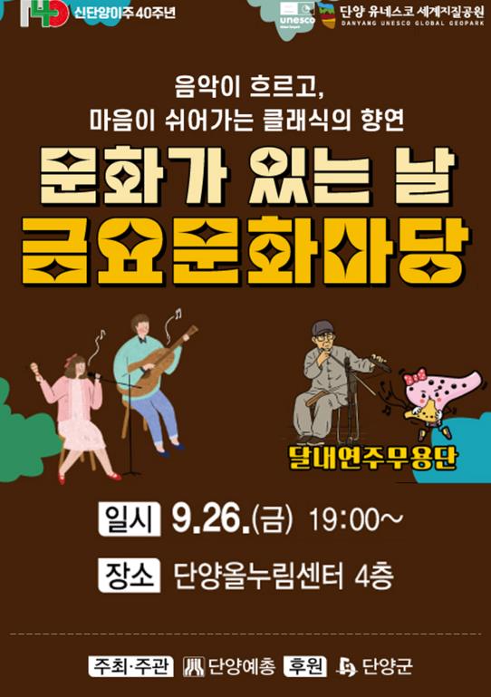 단양군, '2025 문화가 있는 주간 금요문화마당' 운영