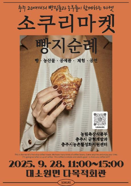 충주시농촌활성화지원센터는 오는 9월 28일 오전 11시부터 오후 3시까지 대소원면 다목적회관 광장에서 두 번째 ‘소쿠리마켓 빵지순례’를 개최한다고 밝혔다.