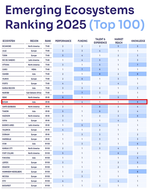 | ▲ 스타트업지놈(StartupGenome)신흥창업도시순위(70~100위) |