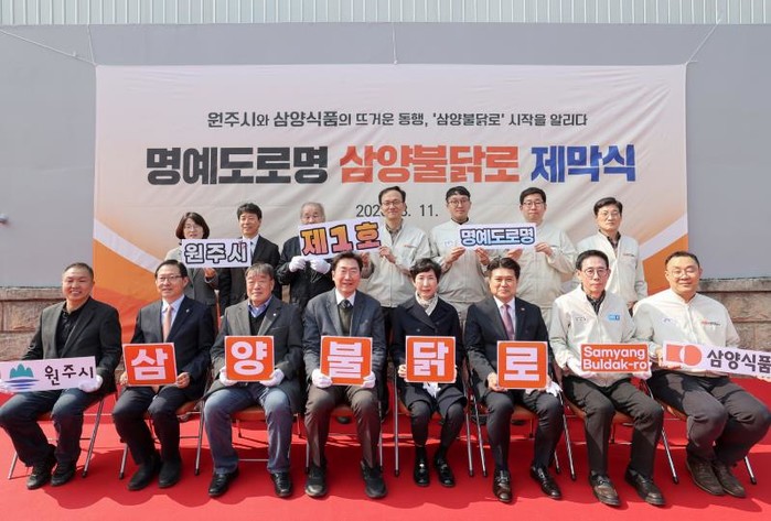 원주시, 제1호 명예도로명 '삼양불닭로' 제막