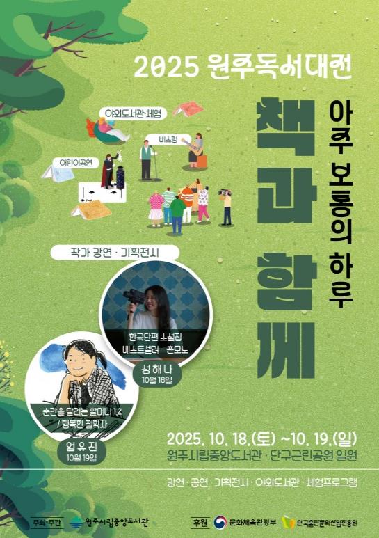 원주시는 10월 18일부터 19일까지 2일간 시립중앙도서관 일원에서 ‘2025 원주 독서대전’을 개최한다.