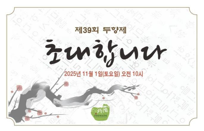 단양문화보존회가 주최‧주관하고 단양군과 단양문화원이 후원하는 '제39회 두향제'가 오는 11월 1일 옥빛으로 흐르는 단양강과 어우러진 단성면 장회나루 일원에서 열린다.