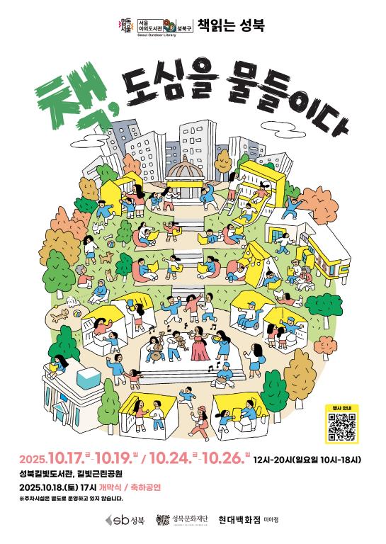 서울 성북구와 성북문화재단이 오는 10월 17일부터 26일까지 매주 금·토·일요일, 성북길빛도서관과 길빛근린공원 일대에서 『서울야외도서관 책 읽는 성북 – 책, 도심을 물들이다』를 운영한다.