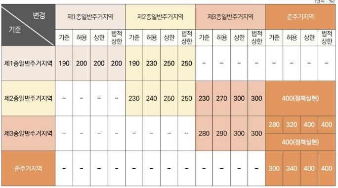▲ 2030 부천시 도시·주거환경정비기본계획 변경 중 ‘주거지역 용적률 체계 변경안 총괄표’ |