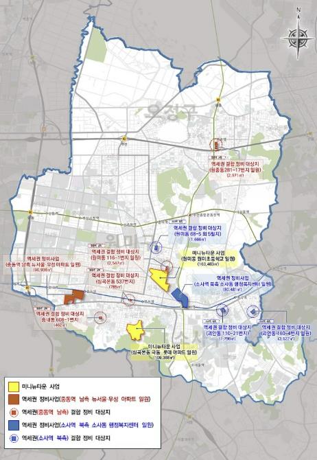 ▲ 지난 7월 선정된 ‘미니뉴타운·역세권정비사업’ 대상지 위치도 |