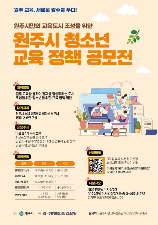 ▲ 원주시 청소년 교육 정책 공모전 안내문 |