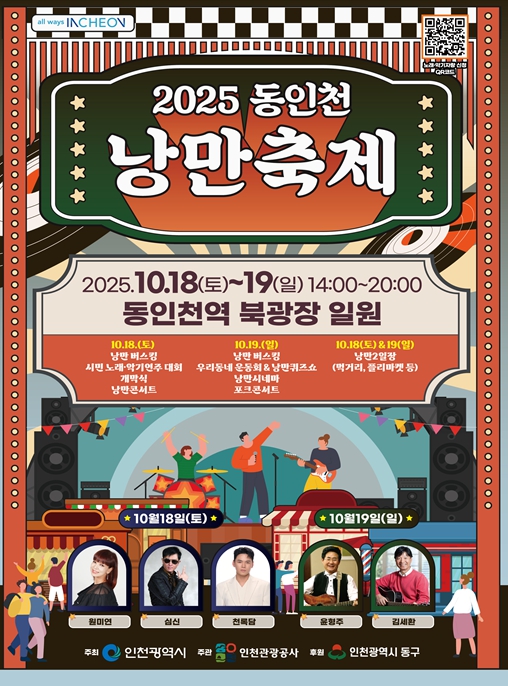 인천광역시는 오는 10월 18일부터 19일까지 이틀간 동인천역 북광장에서 ‘2025년 동인천 낭만축제’를 개최한다고 밝혔다.