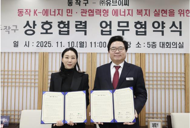구는 지난 10일 ㈜유브이씨와 ‘동작 K-에너지, 민·관 협력형 에너지 복지 실현을 위한 업무협약’을 체결하고 이같이 밝혔다.