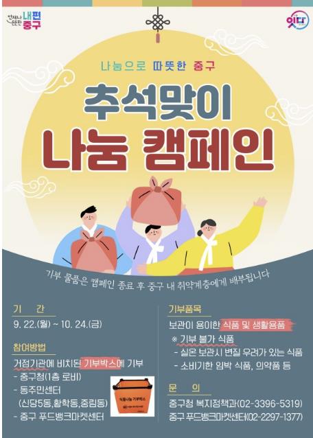 서울 중구, 추석명절 맞아 나눔 캠페인 펼쳐
