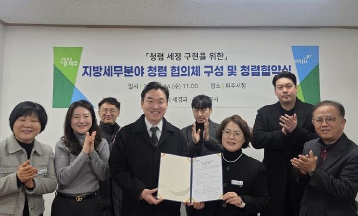 파주시는 지난 14일 파주지역세무사회(마을세무사)와 함께 청렴 문화의 정착과 확산을 위한 민관 청렴협의체를 구성하고, 청렴 실천을 위한 협약을 체결했다고 밝혔다.