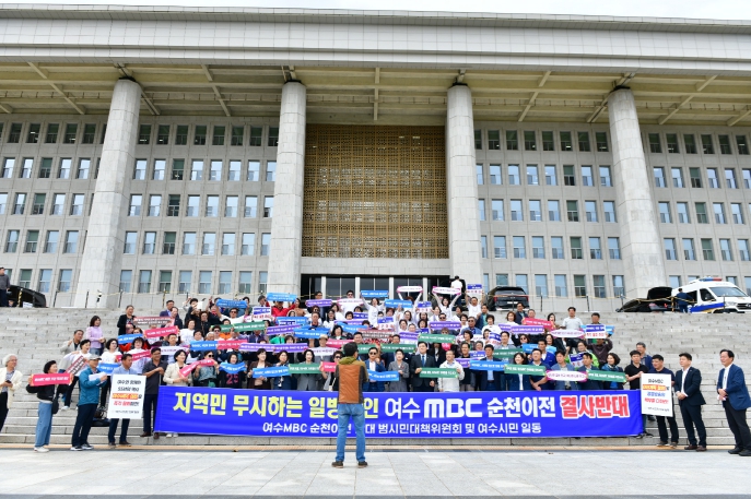 여수시의회는 10월 14일 MBC본사와 국회에 항의 방문하며 여수MBC 순천 이전 철회를 강력히 촉구했다.