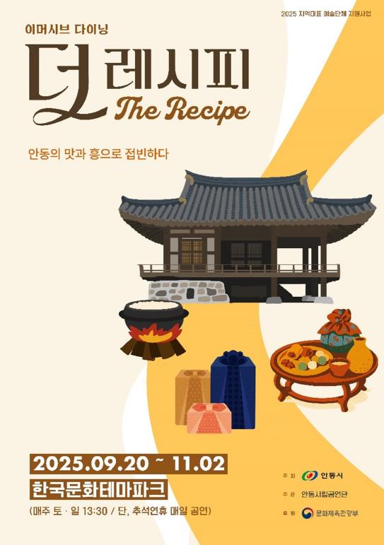 안동시립공연단이 창립 이후 첫 작품으로 이머시브 다이닝 공연 〈더 레시피〉를 무대에 올린다. 이번 공연은 문화체육관광부‘2025 지역대표 예술단체 지원사업’에 선정된 작품으로, 안동의 전통과 음식, 공연예술을 결합한 신개념 무대다.