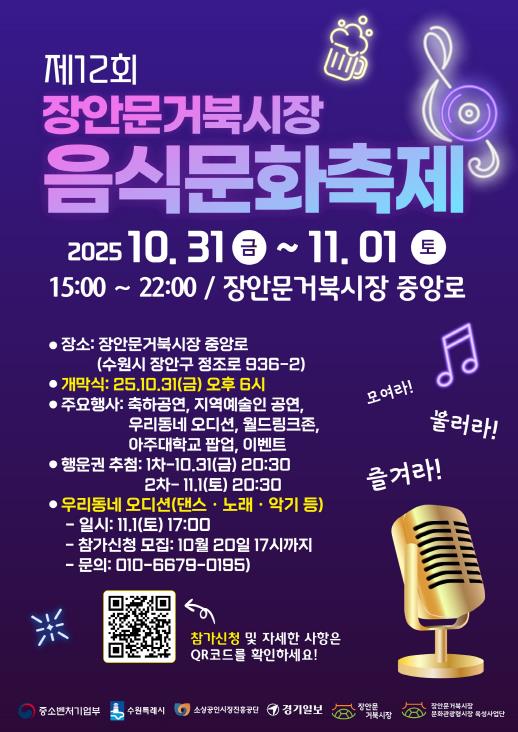 수원 장안문거북시장 중앙로에서 10월 31일부터 11월 1일까지 ‘제12회 장안문거북시장 음식문화축제’가 열린다.