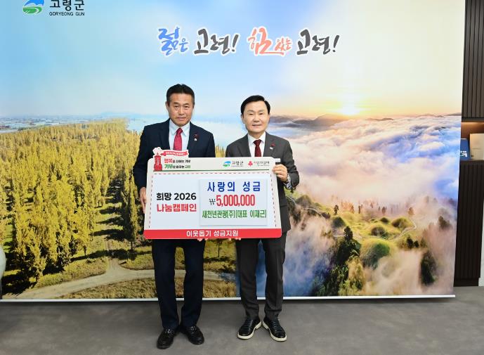 이에 군 관계자는 “매 순간 지역 사회를 위해 헌신하고 나눔을 실천해 주시는 분들 덕분에 고령군이 더욱 따뜻해지고 있다.”며 “기탁해주신 성금은 복지 사각지대 해소를 위해 꼭 필요한 곳에 전달하겠다.”고 감사의 뜻을 전했다.