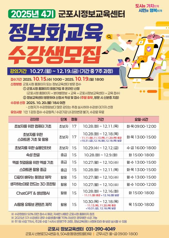 ▲ 군포시, 2025년 4기 시민정보화교육 수강생 모집 |