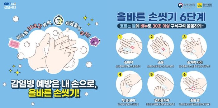 이에 따라 전남도는 3월부터 12월까지 도민을 대상으로 손 씻기 실천율을 높이기 위한 다양한 홍보·교육 사업을 추진한다.