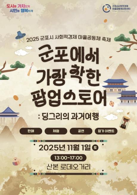 군포시는 오는 11월 1일 오후 1시부터 5시까지 산본로데오거리에서 2025년 사회적경제 나눔장터 및 마을공동체 한마당축제를 개최한다.