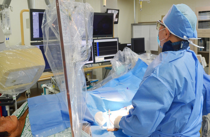 | ▲ 배장호 건양대병원 심혈관센터장이 심혈관 중재시술을 하고 있다. |