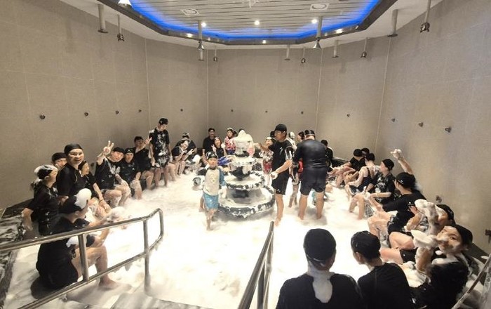 ▲ 추석 연휴, 완도해양치유센터 해조류 거품 테라피실에 사람들로 붐빈 모습 |