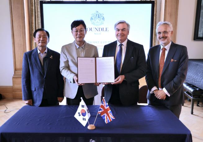| ▲ 2025. 10. 17. 이민근 안산시장이 안산사이언스밸리지구 내 국제학교 설립을 위해 英 온들스쿨로부터 투자의향서를 접수받고 있다 |