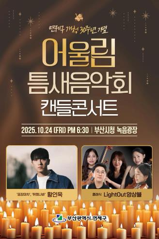 연제구는 10월 24일 오후 6시 30분 소소길 인근에 위치한 부산시청 녹음광장에서 특별한 가을밤을 선사하는 제2차 어울림 틈새음악회 ‘캔들콘서트’를 개최한다.