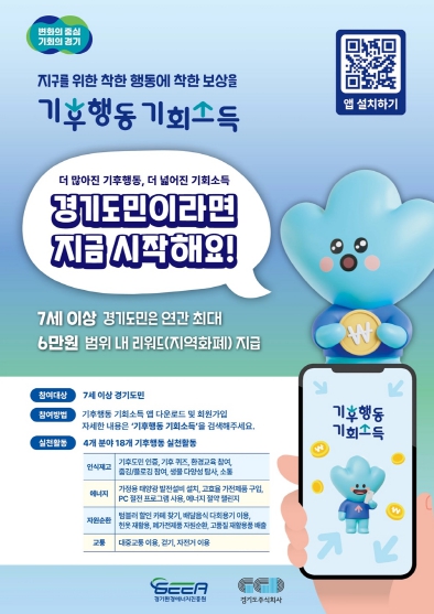 ‘기후행동 기회소득’은 민선 8기 경기도 대표 정책 중 하나로, 일상생활 속 온실가스 감축 활동에 대해 평가와 보상을 제공하는 사업이다. 경기도는 지난해부터 전용 앱(App)을 통해 도민들의 탄소 감축 활동 실적을 기록하고 이에 따른 보상을 지역화폐로 지급하고 있다. 현재까지 누적 가입 회원은 152만 명이다.