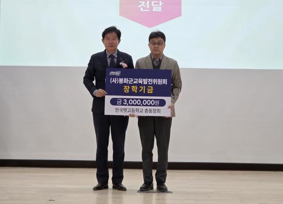 한국펫고등학교총동창회는 11월 22일 개최된 한국펫고등학교 개교 50주년 기념식에서 지역 인재 양성을 위해 써달라며 (사)봉화군교육발전위원회에 300만 원의 장학금을 기탁했다.