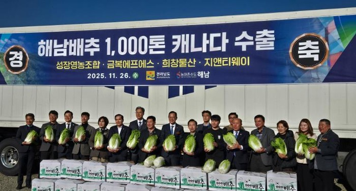전라남도는 26일 해남 산이면에서 해남배추 1천 톤 캐나다 수출 선적식을 개최하고, 북미시장을 겨냥한 본격적인 수출에 나섰다고 밝혔다.