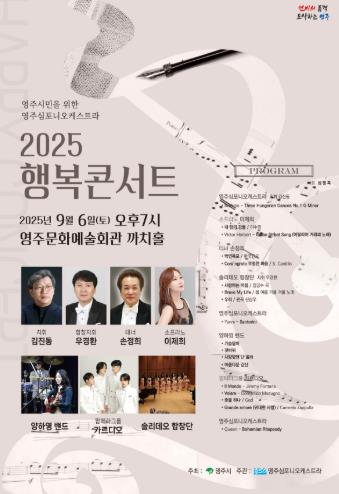 영주시는 오는 9월 6일 오후 7시, 영주시문화예술회관 까치홀에서 시민들을 위한 ‘2025 행복콘서트’를 개최한다.