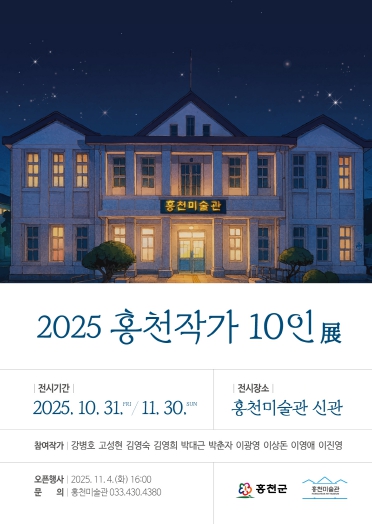 홍천군은 지역 예술인의 창작활동을 지원하고 예술 교류의 장을 마련하기 위해 '2025 홍천작가 10인전'을 개최한다고 밝혔다.