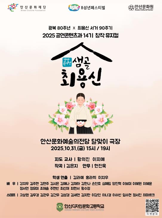 민형기 안산디자인문화고등학교 교장은 “‘샘골 최용신’은 지역의 역사와 인물을 청소년의 시선으로 다시 해석하고, 교육을 통해 예술로 구현한 뜻깊은 공연”이라며 “앞으로도 지역사회와 연계한 창의적 예술교육을 지속해 나가겠다”고 말했다.