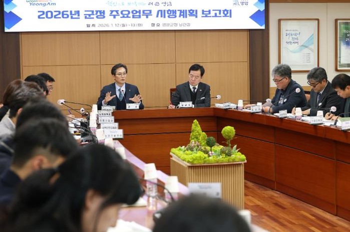 영암군이 12~13일 군청에서 올해 군정 전반의 방향성과 실천 전략을 점검하는 ‘2026 군정 주요업무 시행계획 보고회’를 개최했다.
