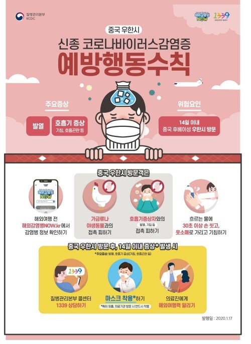 시 관계자는 “해외여행시 수산물·가금류·야생동물 판매 재래시장 방문을 자제하고 여행 후 입국 시 발열 및 호흡기증상이 있는 경우 검역관에게 신고해야 한다”며 “중국 우한시 방문 후 14일 이내 발열, 기침, 가래, 호흡곤란 등 증상이 있을 경우 질병관리본부 긴급상황실 또는 관할 보건소(상록수보건소 ·단원보건소 )로 즉시 신고하기 바란다”고 강조했다.
