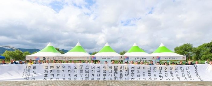 이날 행사에는 지역 서예인과 군민, 관광객 등 100여 명이 참여해 한글의 창제 의미를 함께 나누었다.