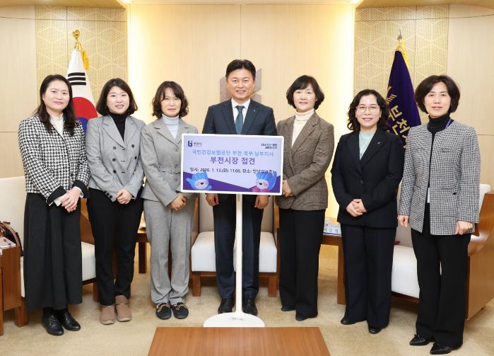 접견에는 조용익 부천시장을 비롯해 국민건강보험공단 김혜숙 부천북부지사장, 이금영 부천남부지사장과 함께 정애경 부천시 복지국장, 모영미 돌봄지원과장 등 관계자들이 참석해 통합돌봄 협력사업의 방향성과 실질적 추진 방안에 대해 논의했다.