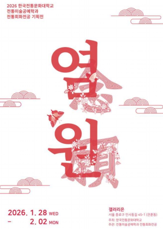 국가유산청 한국전통문화대학교는 1월 28일부터 2월 2일까지 갤러리 은(서울 종로구)에서 전통미술공예학과 전통회화전공 재학생 42명과 교수진이 전통기법과 재료를 바탕으로 제작한 전통회화 작품들을 선보이는 기획전시 '염원(念願)'을 개최한다.
