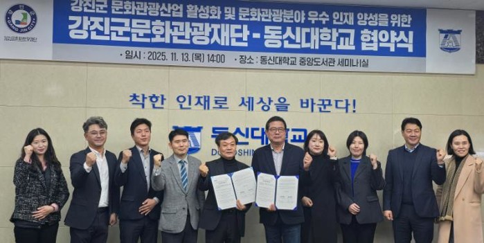 강진군문화관광재단이 최근 동신대와 문화관광산업의 미래 경쟁력 강화와 우수 인재 양성 상호협력에 관한 협약을 체결했다.