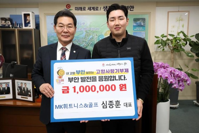 부안군은 부안읍에 위치한 MK휘트니스&골프 심종훈 대표가 고향사랑기부금 100만 원을 기탁했다고 밝혔다.